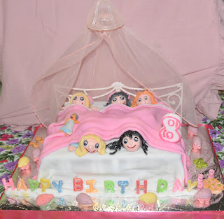 Behind the birthday girl was the headboard with continental pillows, blanket, teddy bear and decor pillows
